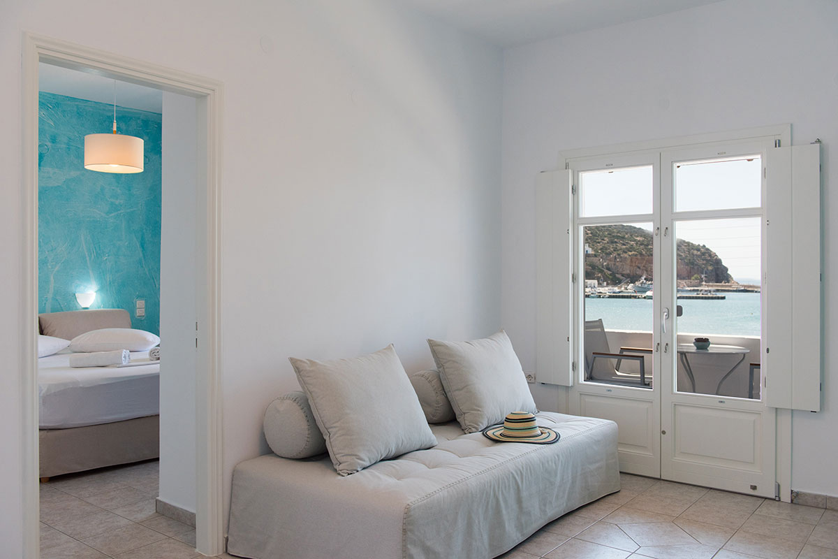 Τα δίχωρα διαμερίσματά μας βρίσκονται στο ισόγειο και στον 1ο όροφο του συγκροτήματος, μπροστά στη θάλασσα. Έχουν μπαλκόνι με θέα στην παραλία του Πλατύ Γιαλού και στο νησάκι της Κιτριανής. Διαθέτουν πλήρως εξοπλισμένη κουζίνα, ένα διπλό κρεββάτι και δύο καναπέδες-κρεβάτια.